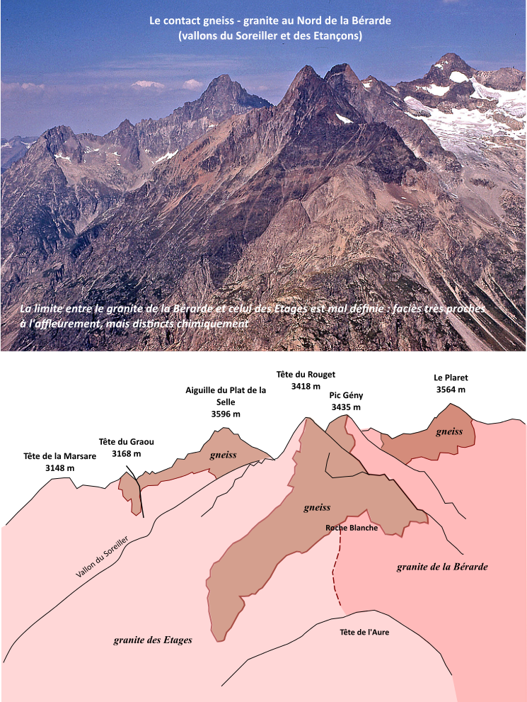 | A7 | Alpes | Contact du granite dans la Tête du Rouget (3418 m) et le Pic Gény (3435 m) |