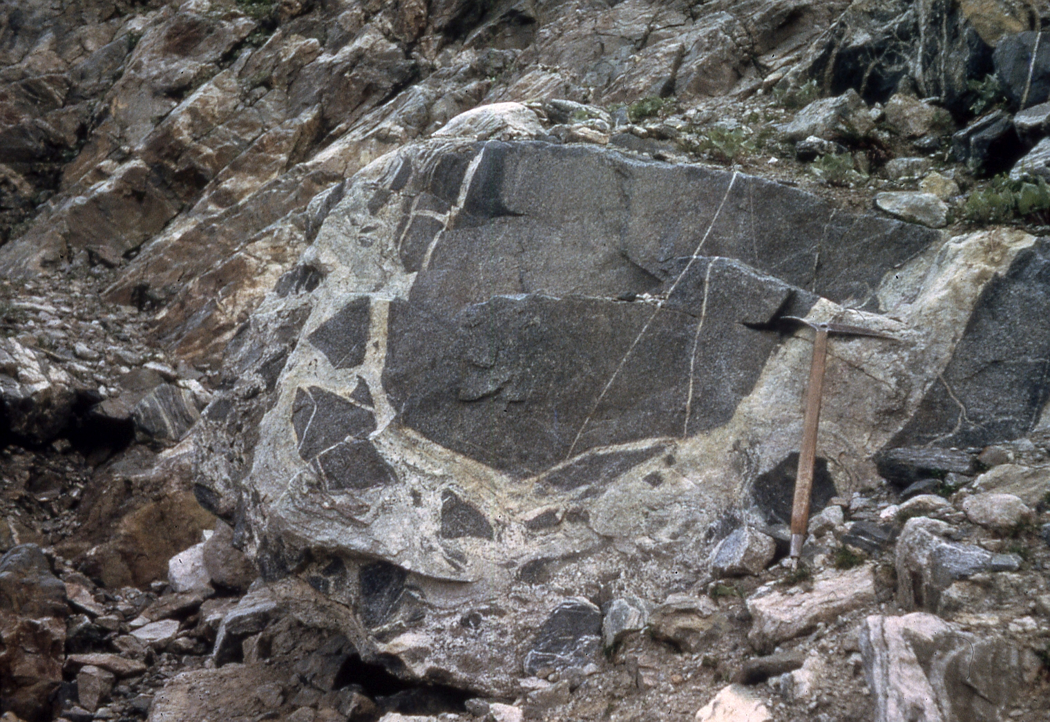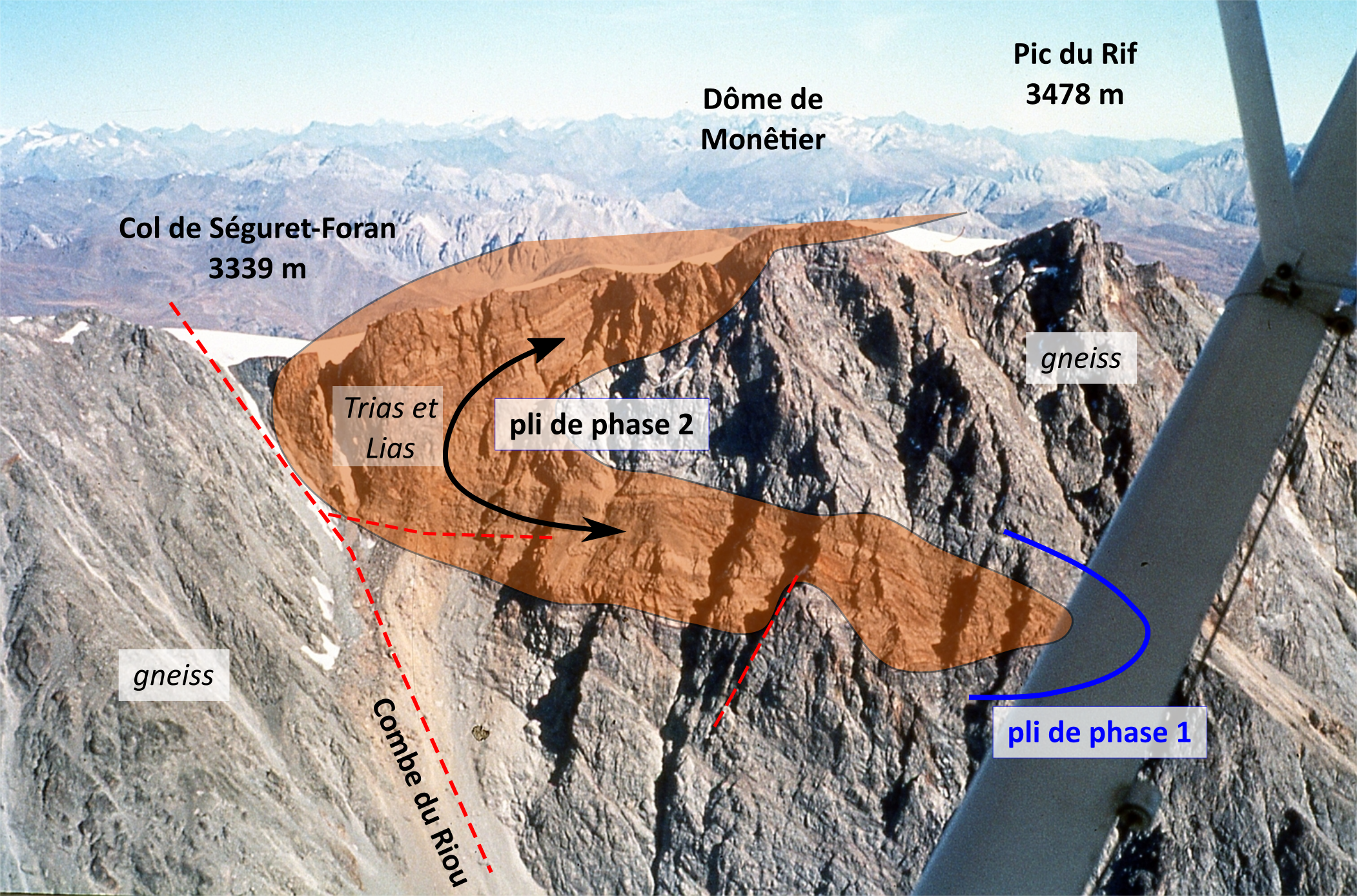 | st8 | structures | Ecrins, Dôme du Monétier, versant S, pli replié affectant le Trias et le socle |