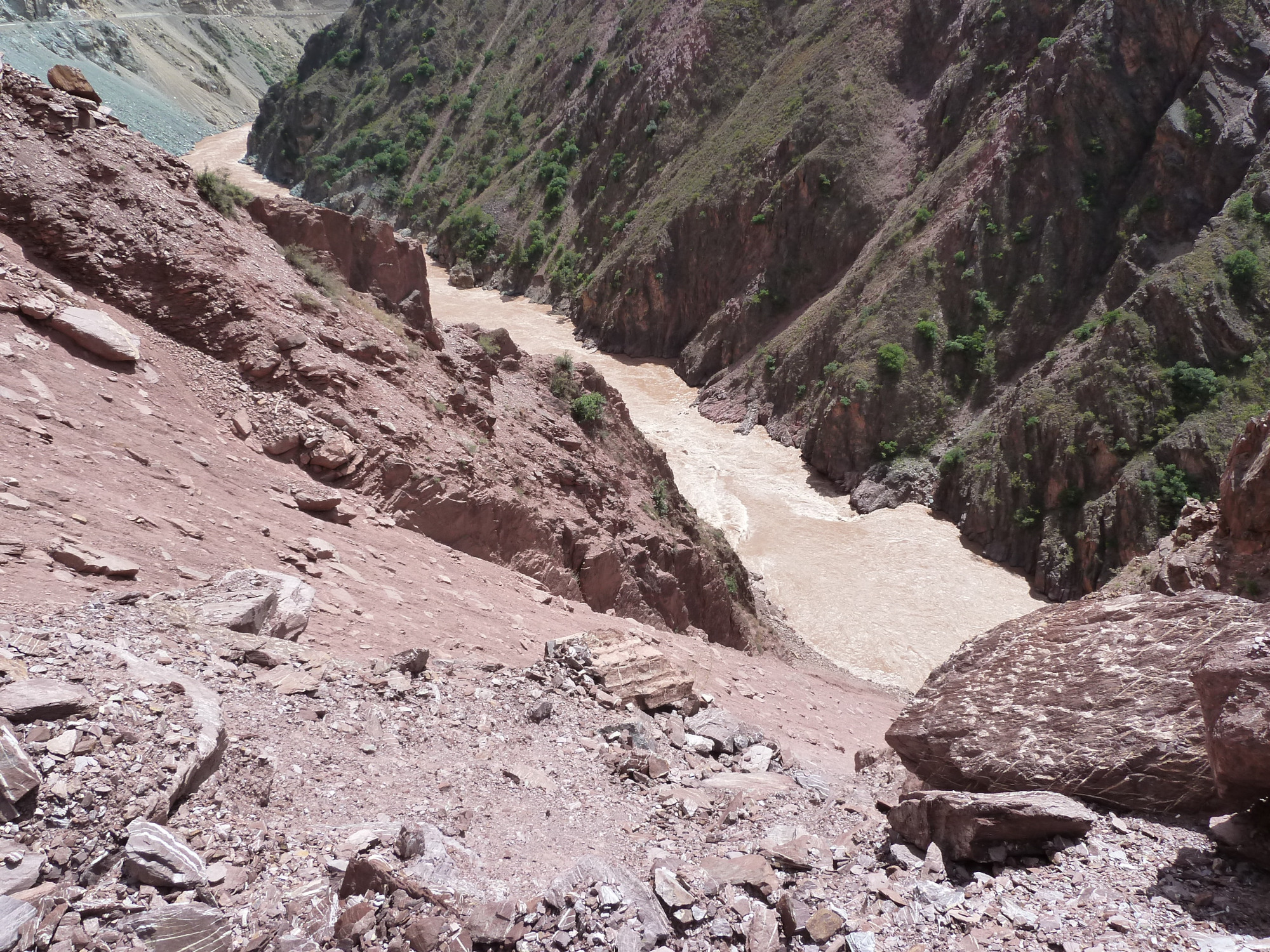 | r8 | roches | Népal, Burhi Gandaki, entre Kanibesi et la Machha Khola, brêches en blocs sous la première barre calcaire |