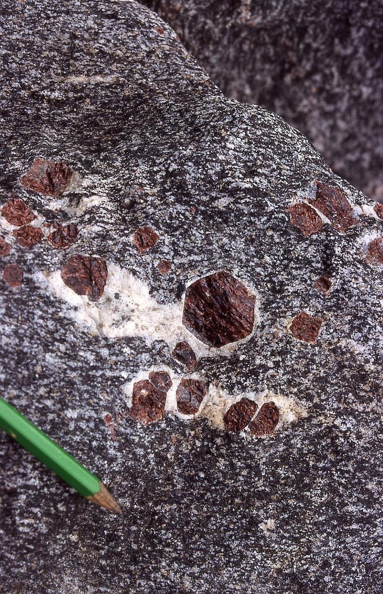 | mx2 | minéraux | Nanga-Parbat, vallée de Dichil, Buridas, grenat dans des gneiss du Nanga Parbat |