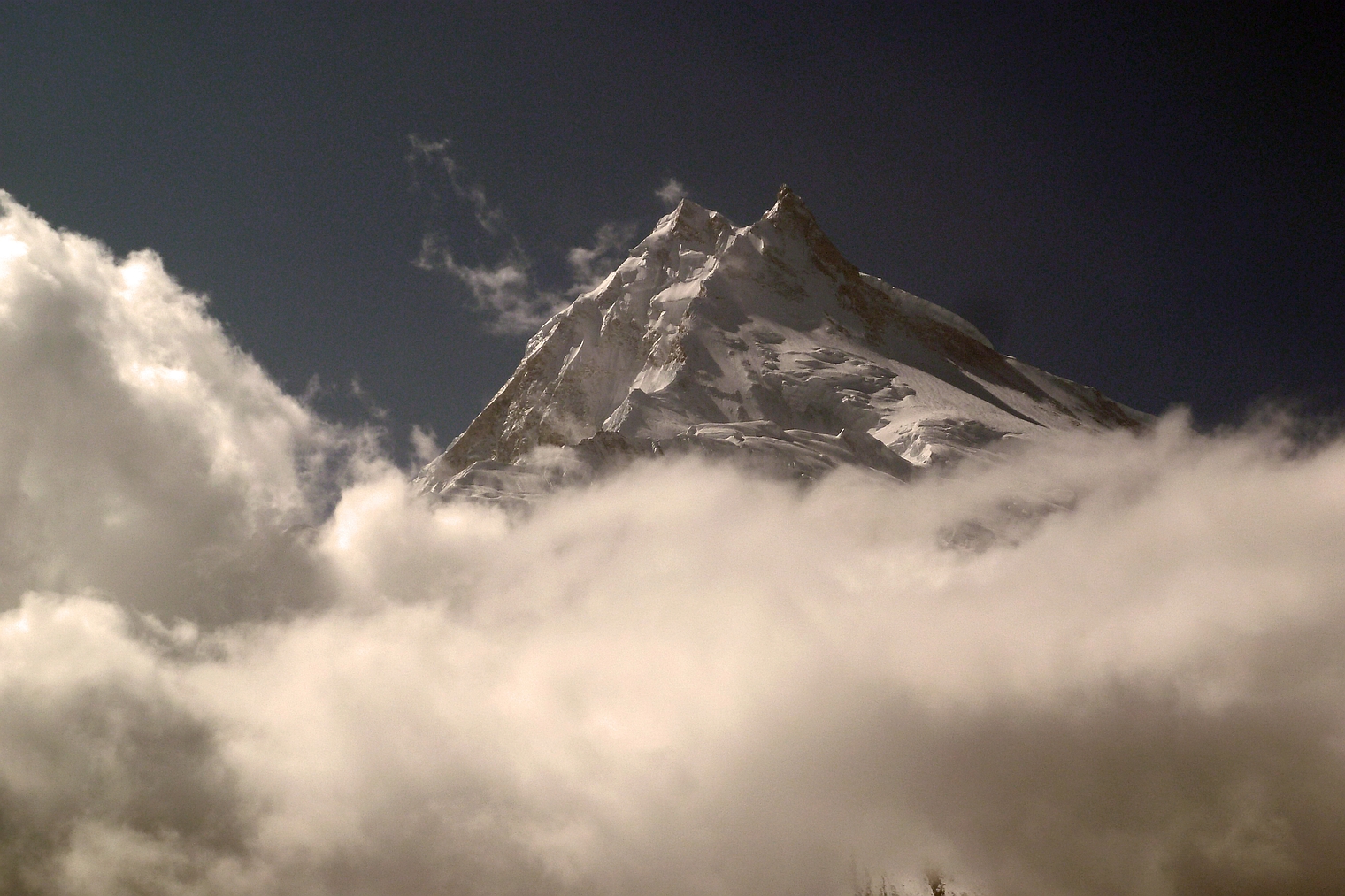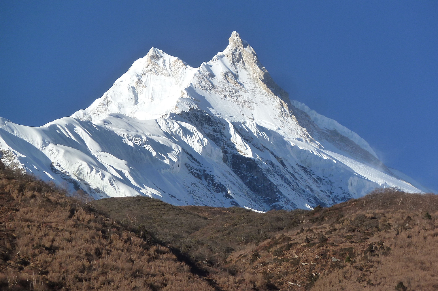 | N12 | Nepal | Manaslu (8163 m), versant Ouest, vu de Kopchepani, au N de Ghanpokhra (24/10/2019) |