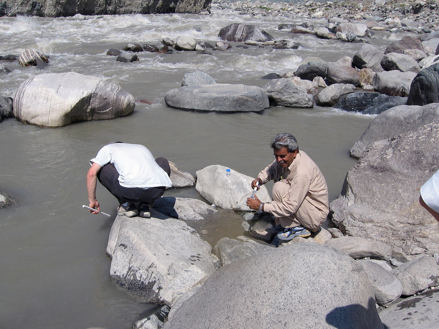 | r7 | roches | Garhwal, riv Bhillangana, en aval de Gutthu, peu en amont Dawling, gneiss oeillés (équivalents des gneiss d'Ulleri au Népal ?) |
