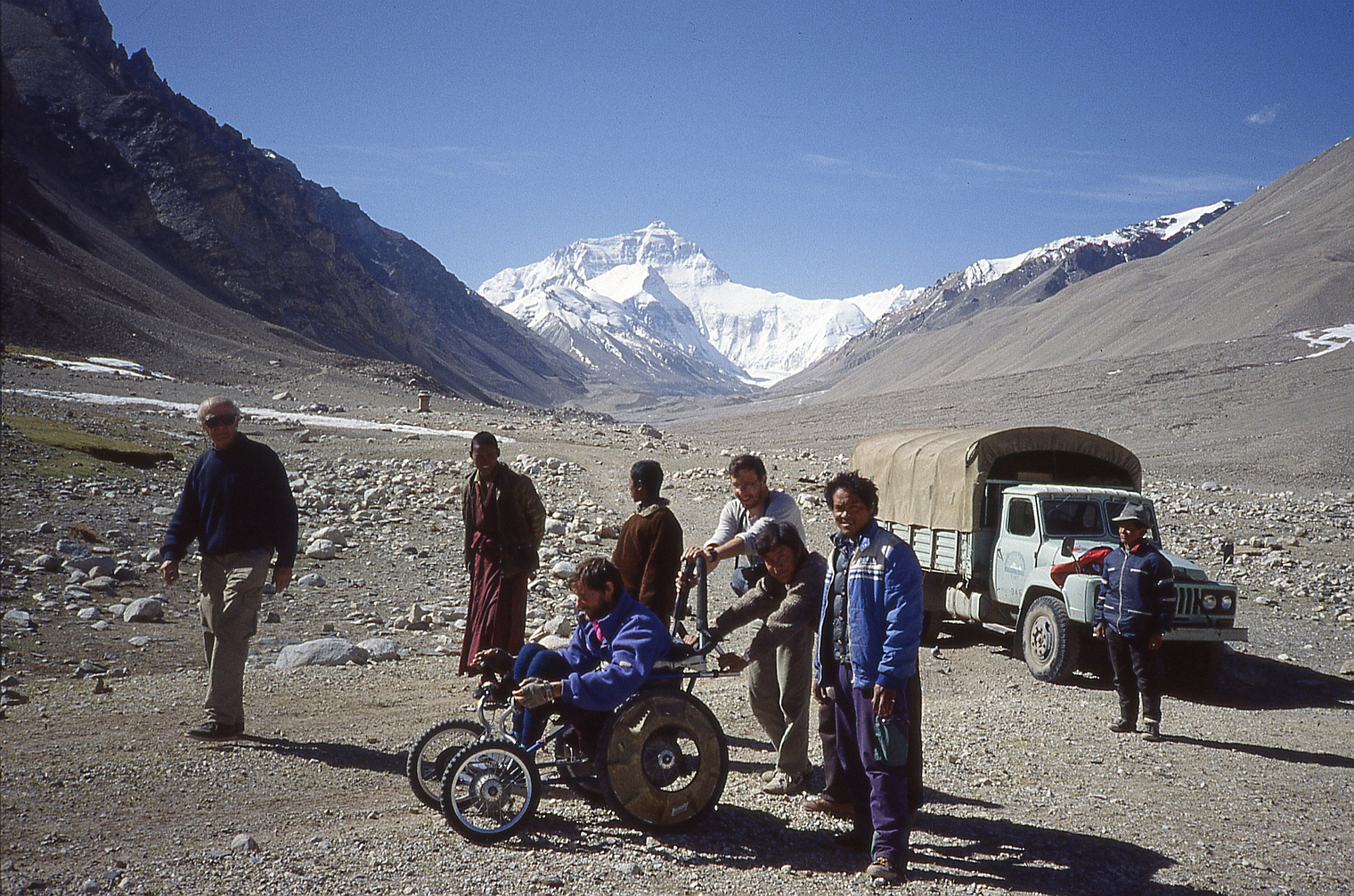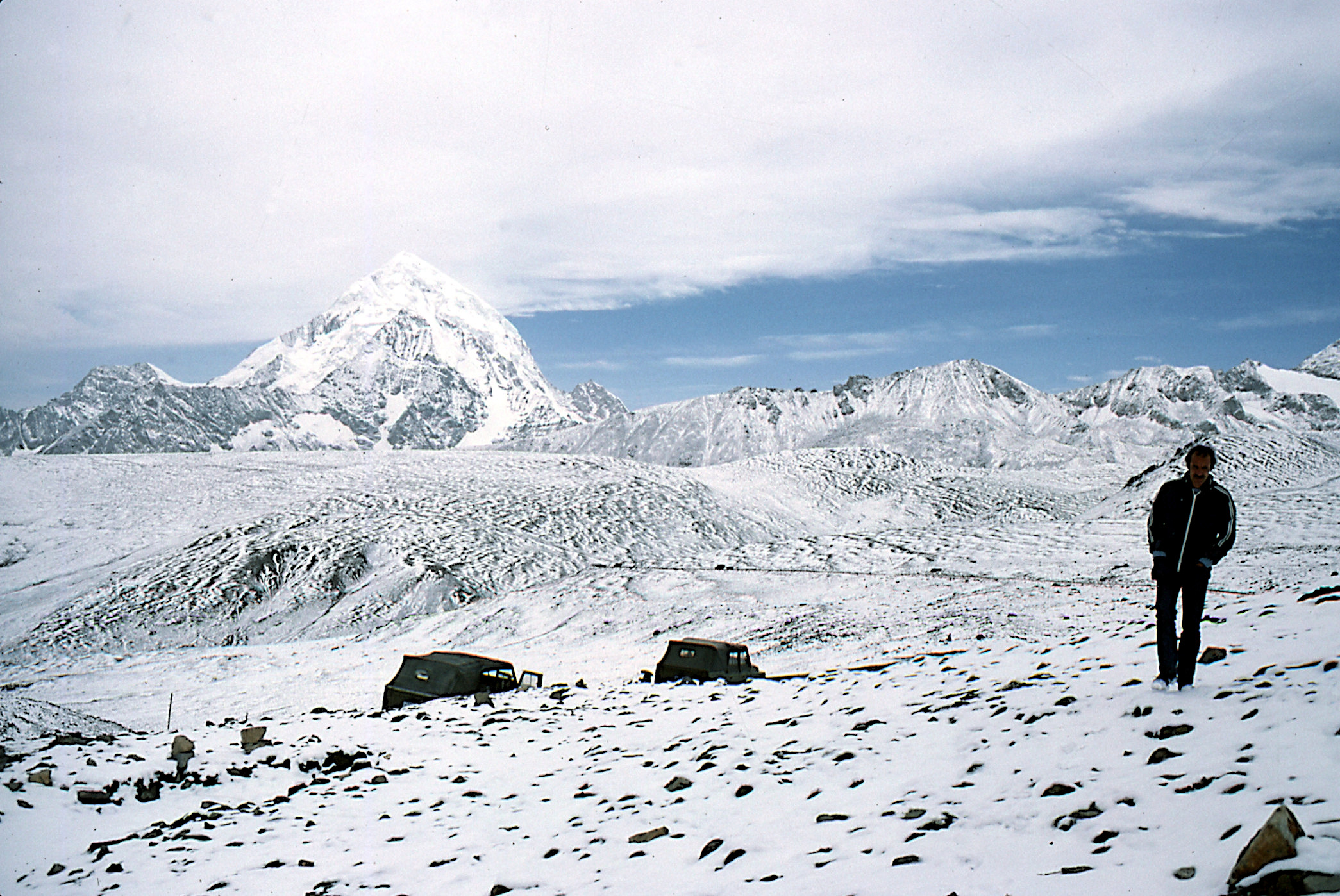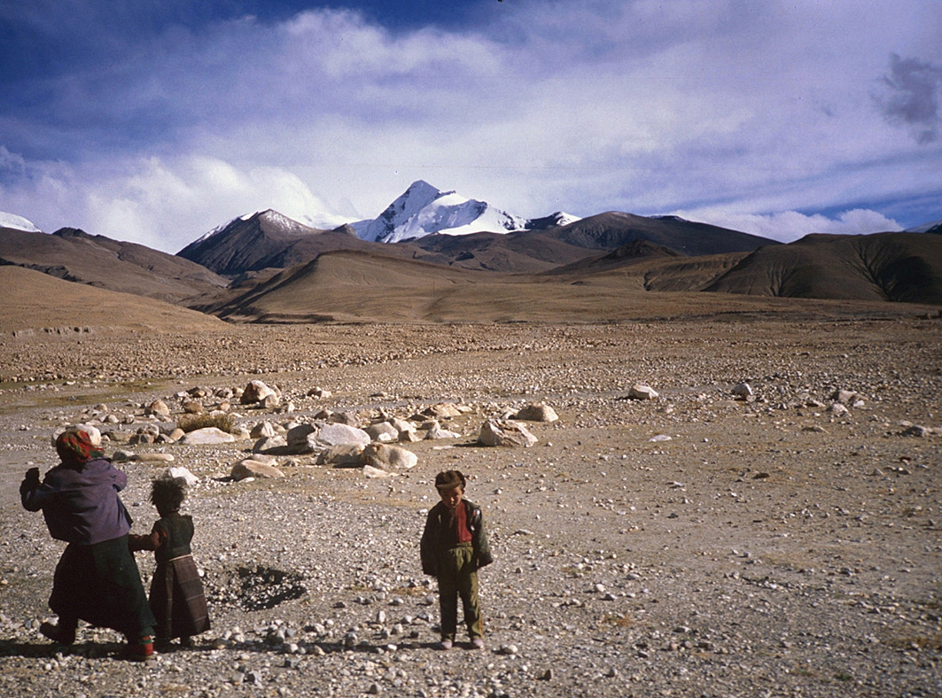 | T12 | Tibet | Tibet, vallée de Rangbuk, J. F. Porret devant le versant Nord de l'Everest (Chomolungma, 8848 m) |
