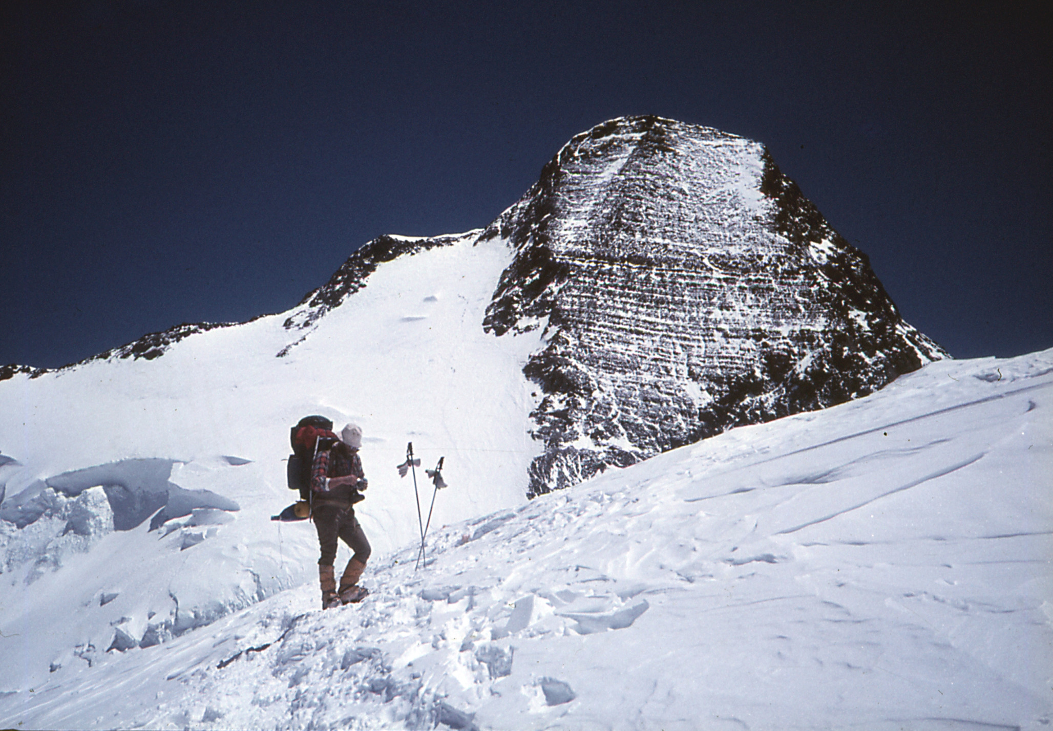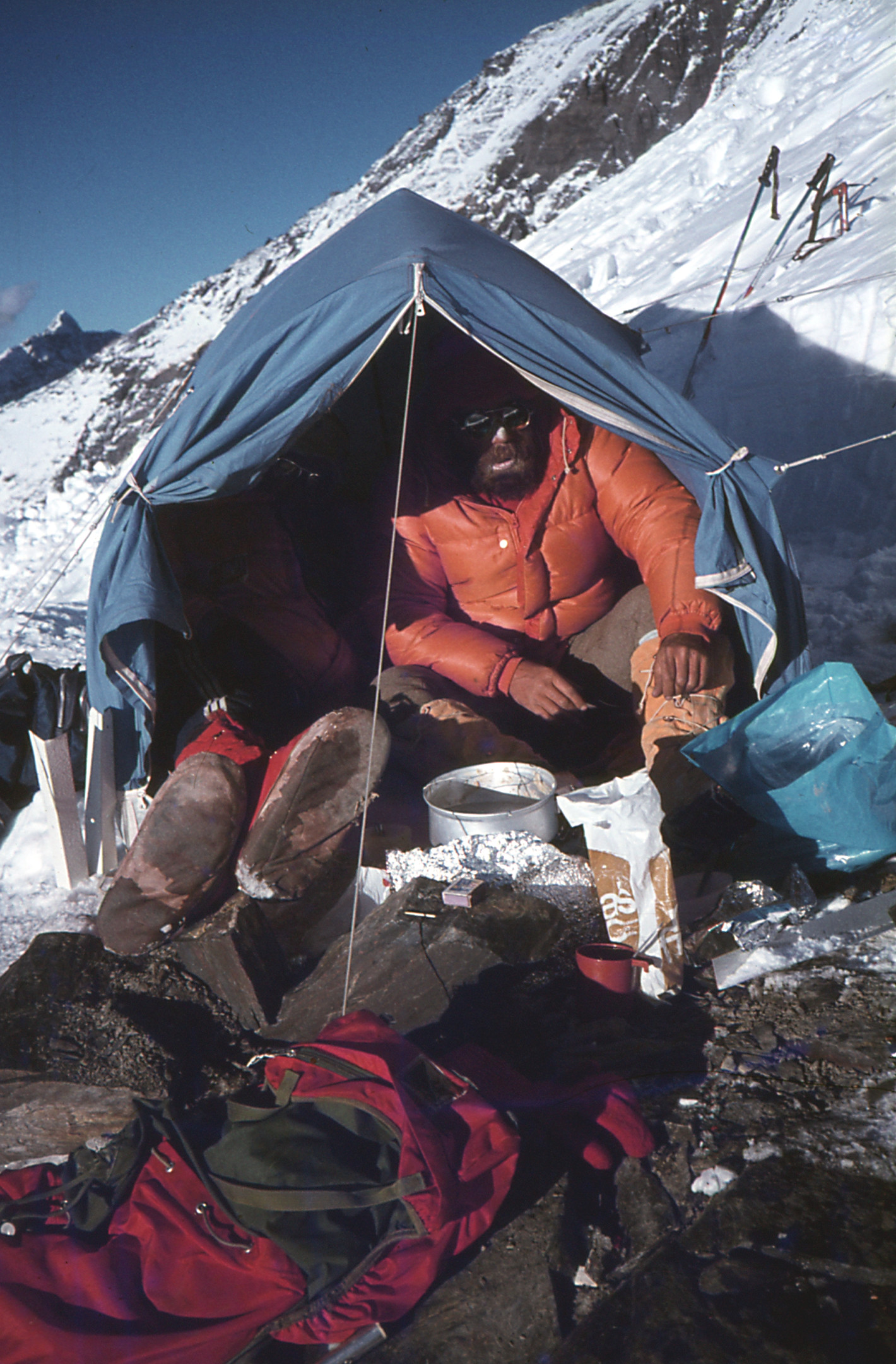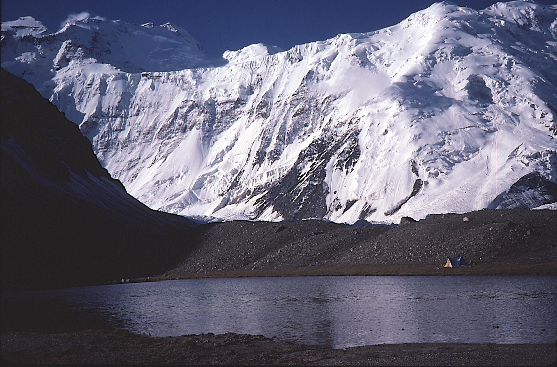 | T12 | Tibet | Tibet, vallée de Rangbuk, J. F. Porret devant le versant Nord de l'Everest (Chomolungma, 8848 m) |