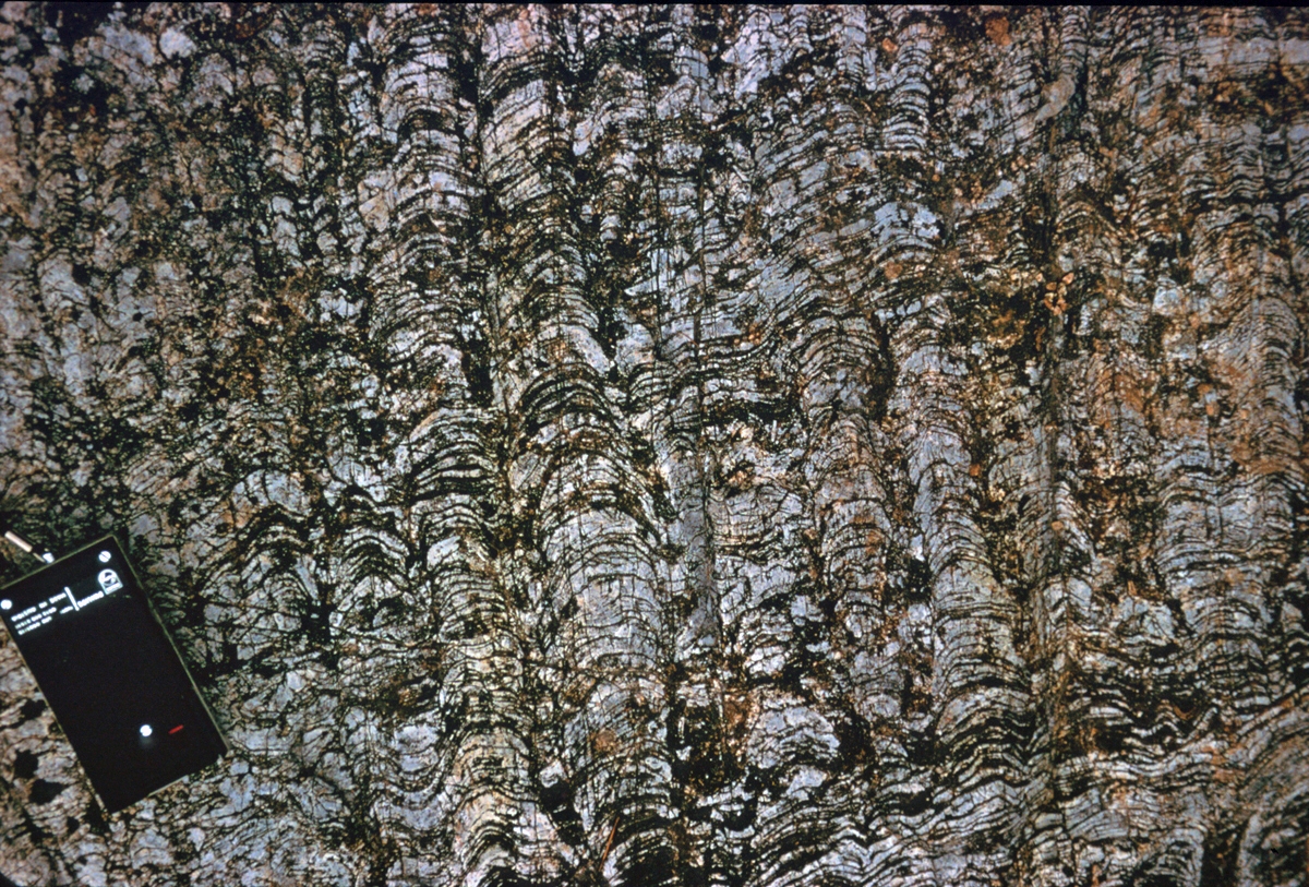 | st9 | structures | Languedoc, pli dans des dolomites et schistosité associée, vallée de l'Orb au Sud de Vieussan" |