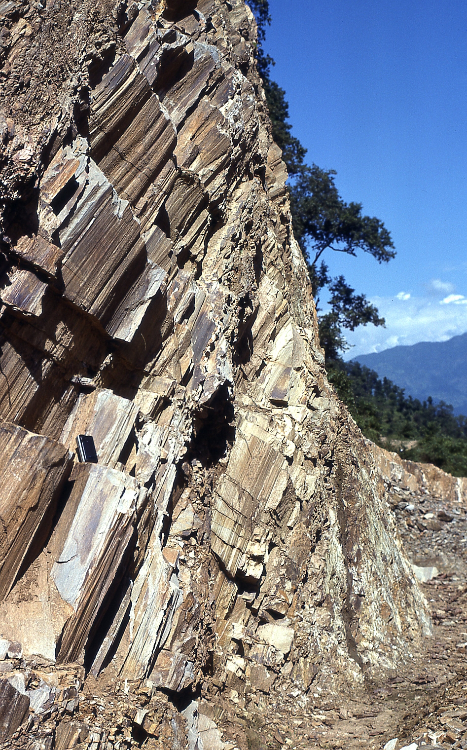 | st17 | structures | Népal, Burhi Gandaki, un peu au dessus du MCT, plis à axes parallèles à l'étirement |