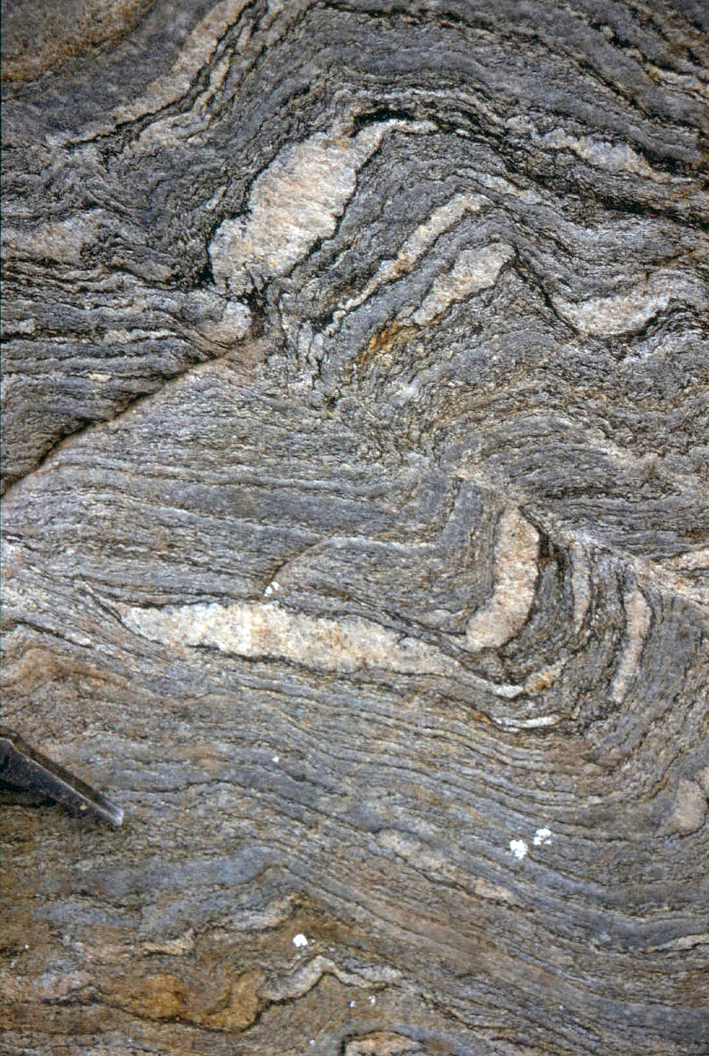 | st14 | structures | Languedoc, pli isoclinal replissé, gneiss du flanc Sud de la Montagne Noire |