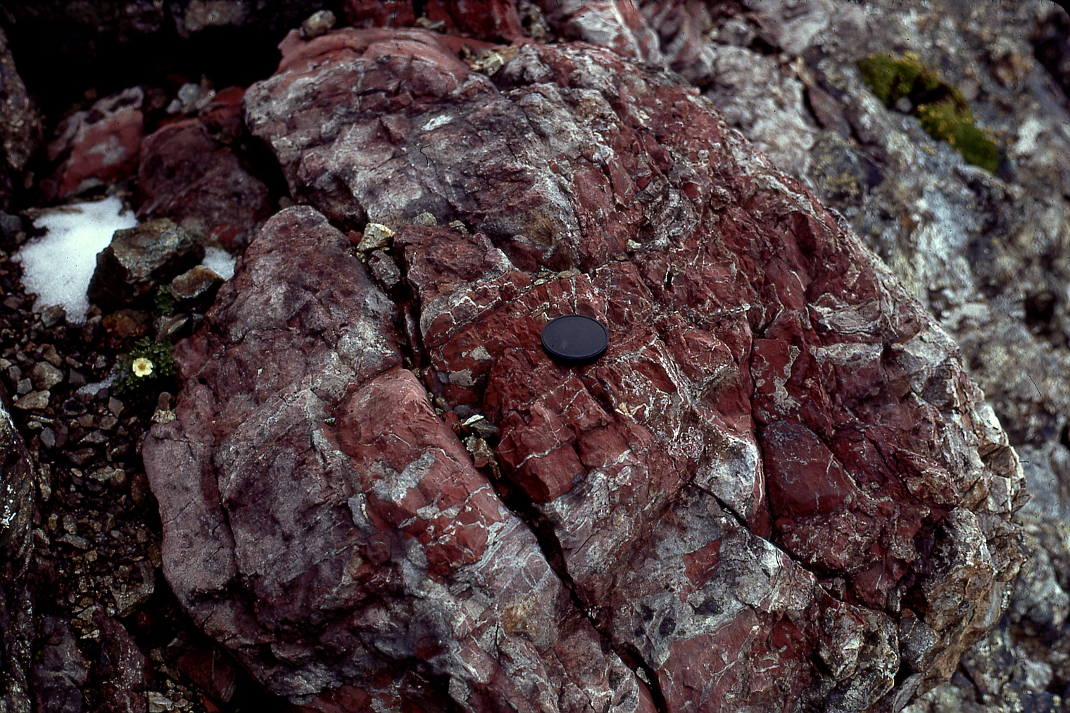 | st12 | structures | Antarctique, Est de Dumont Durville, zone de Marble Island, niveau de grenatite plissée dans des granulites |