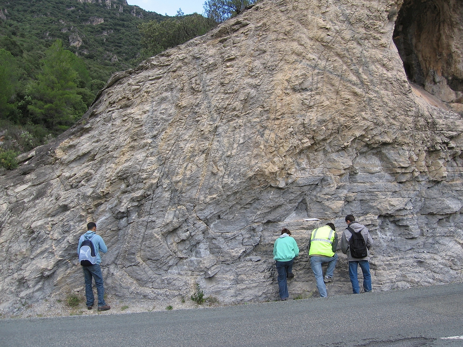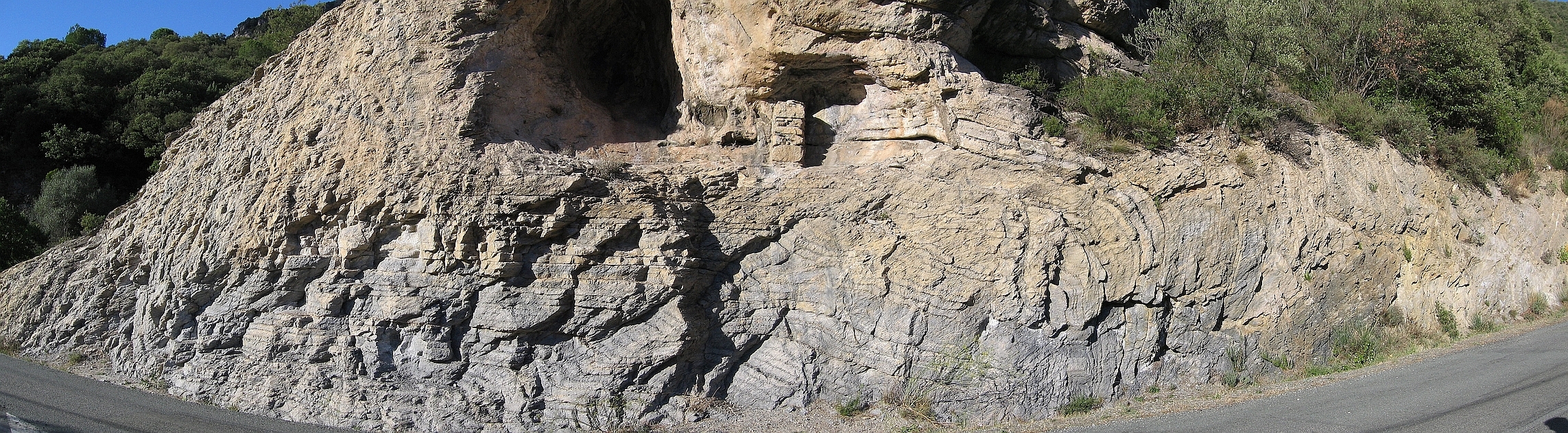 | st10 | structures | Languedoc, pli et schistosité associée, vallée de l'Orb au Sud de Vieussan |