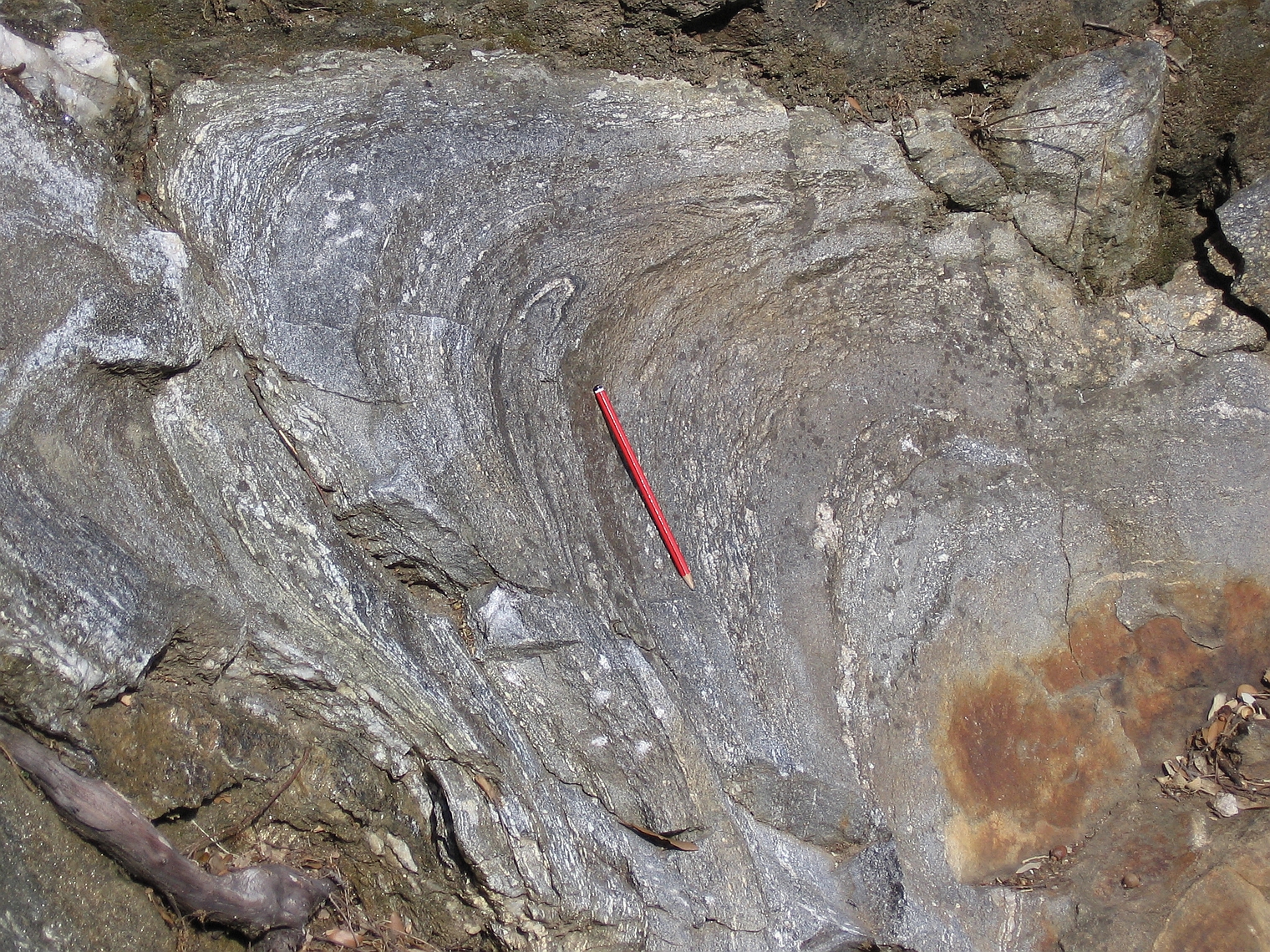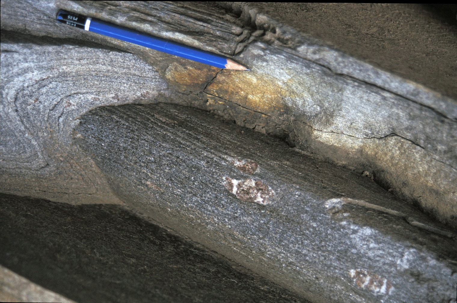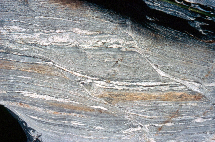| st18 | structures | Languedoc, pli isoclinal dans des mylonites, Sud de la Montagne Noire |