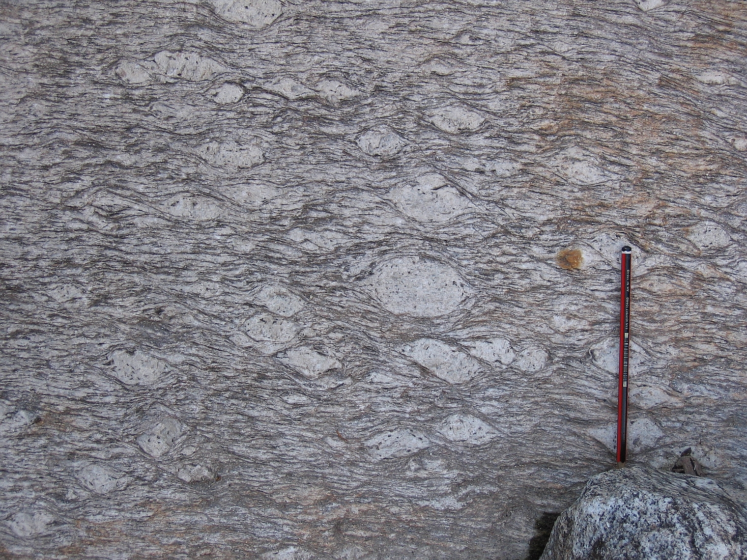 | st19 | structures | Languedoc, amandes C-S dans un gneiss oeillé, Sud de la Montagne Noire |