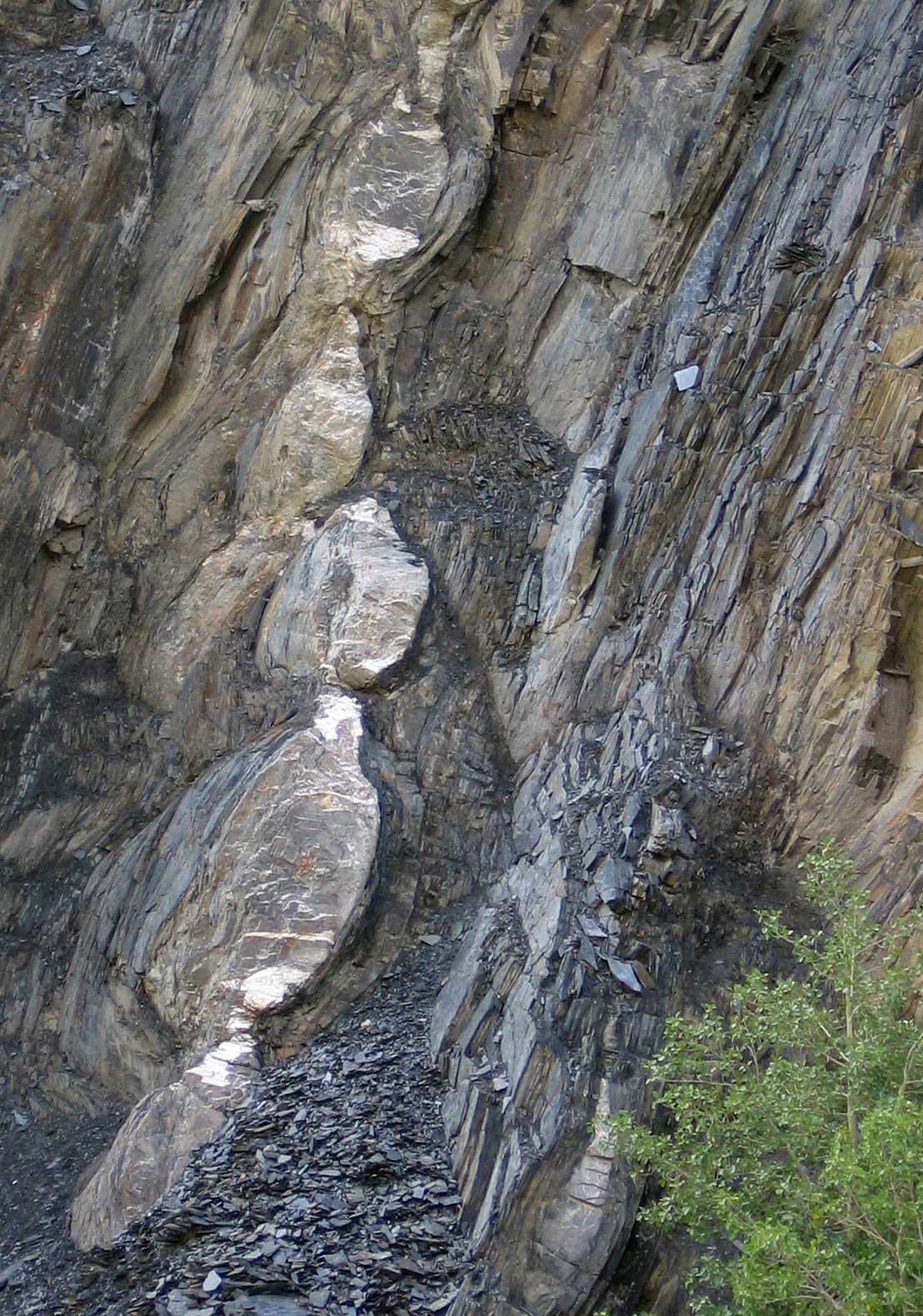 | st27 | structures | Pakistan, KKH, au Sud de Soust, figures de boudinages dans les séries du Nord Karakorum |